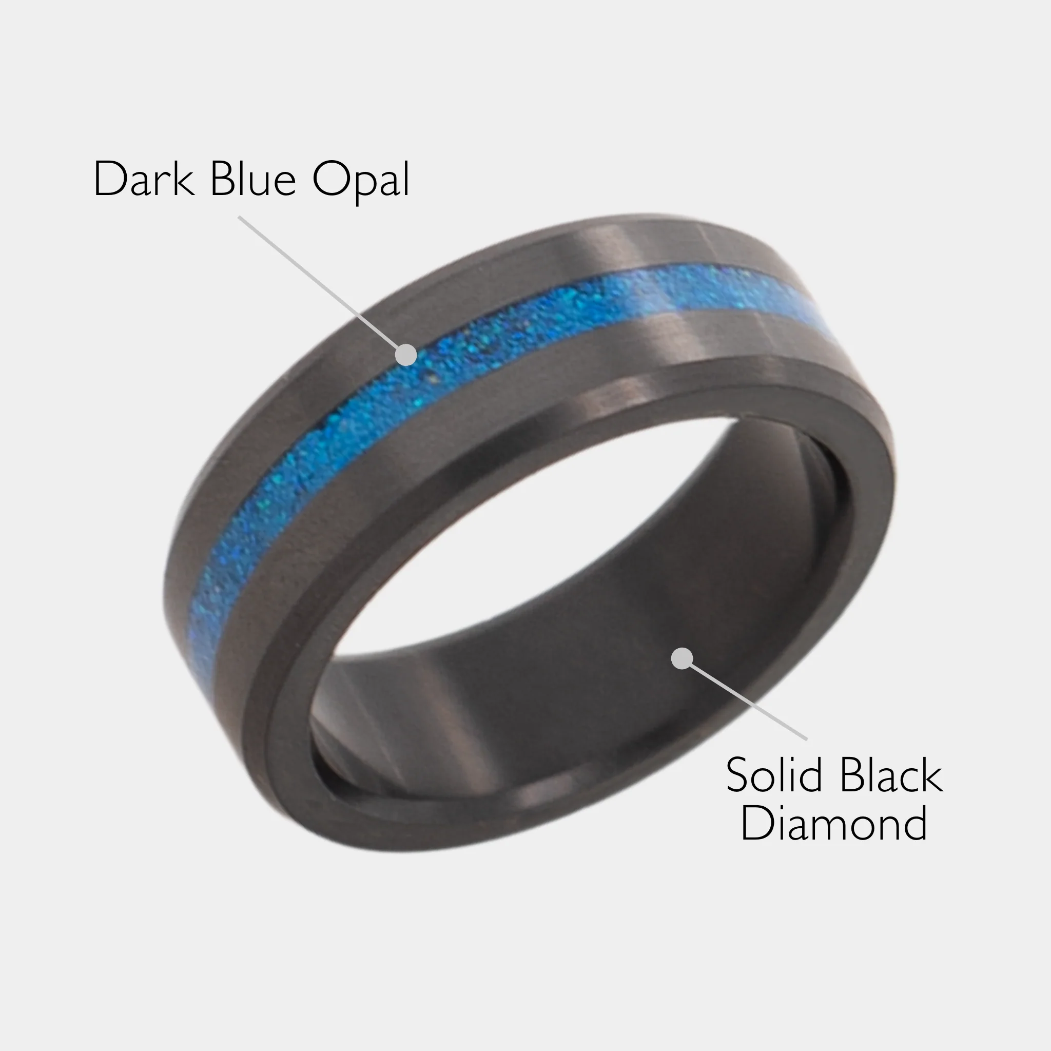 Shaped from solid black diamond and defined by a clean, centered opal inlay set into our signature beveled edge. The contrast is intentional. The Permanent, light-absorbing material is paired with a luminous inlay that shifts subtly with movement.
