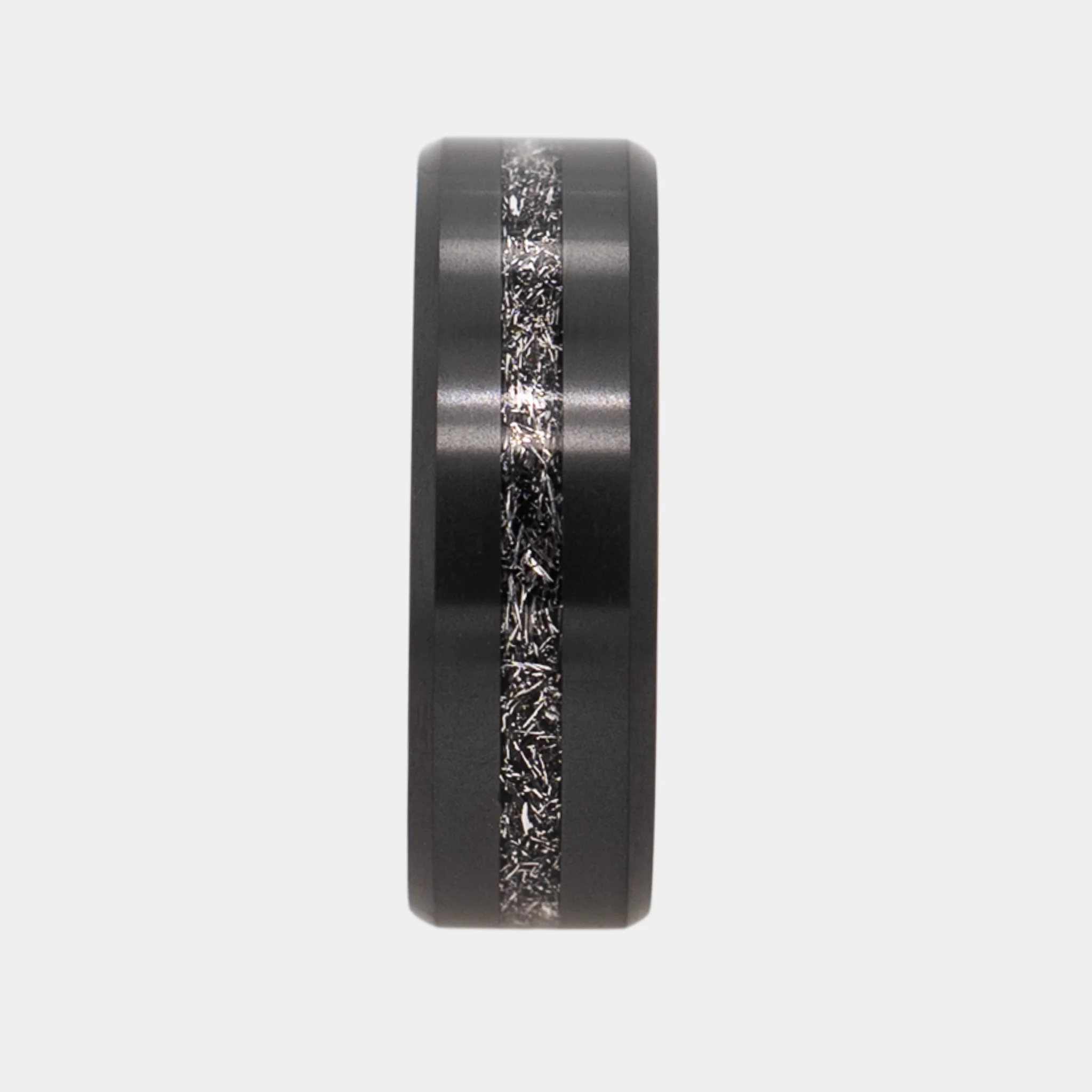 Black Diamond - Men’s Ring 8mm - Authentic Muonionalausta Meteorite Inlay With Sleeve - ARES - Elysium Black Diamond