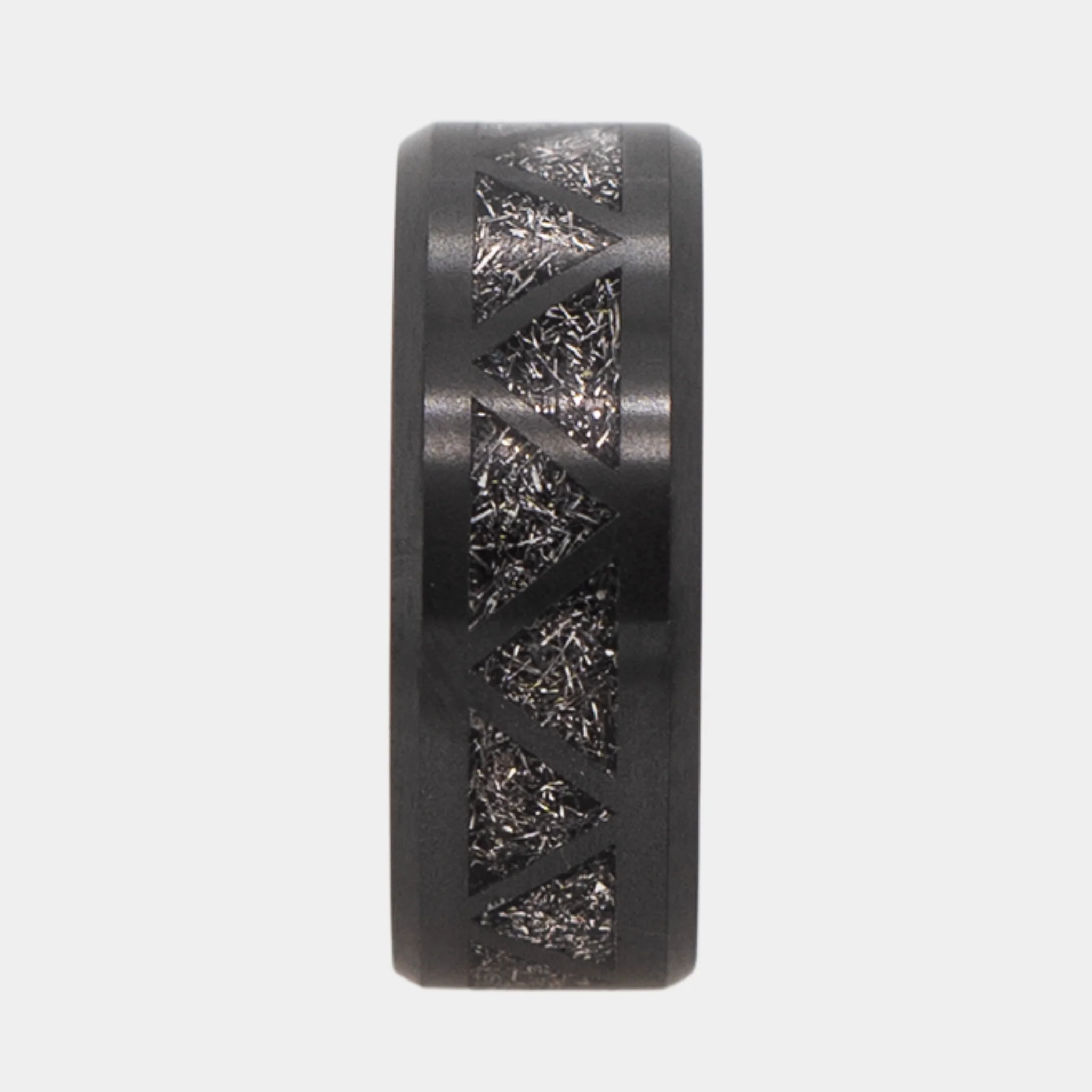 Black Diamond - Men’s Ring 8mm - Authentic Muonionalausta Meteorite Triangle Pattern Inlay - ARES - Elysium Black Diamond